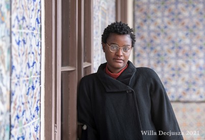 Aaiún Nin er det kunstnernavn den angolanske digter Adelina Kiame benytter sig af, på forsiden af sin debutdigtsamling “På min huds sorthed”, der består af en række suiter.