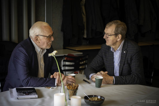 Moderator Jørgen Pyndt, mangeårig politisk velfunderet og kyndig journalist i det nordjyske, kender sin modpart godt.