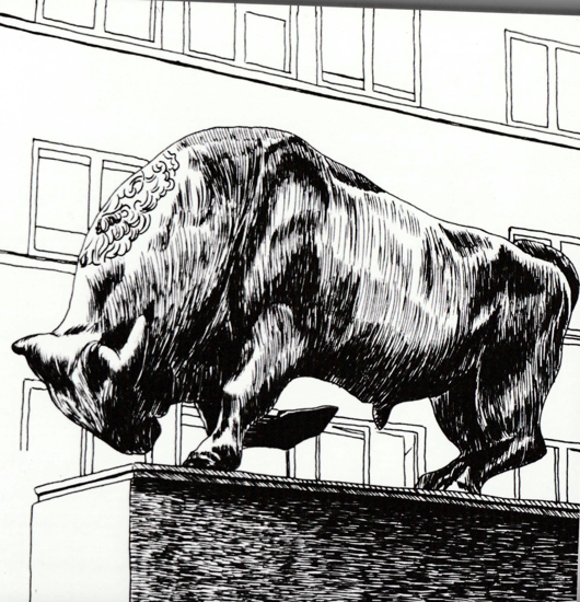 Kolonics “Aalborg” er en grafisk byvandring. Stregen er stilsikker med mange præcise detaljer.