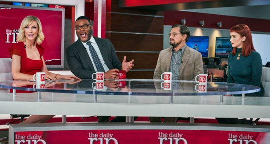 Forskerne går til pressen, og her går det ikke meget bedre. De kommer i tv-showet The Daily Rip, som er en amerikansk pendant til Aftenshowet herhjemme: Alting sovses ind i jovialitet, i privatsnak, i talen ned til folk og i forsøget på at få kendte i studiet. Og da Kate Dibiasky skriger: "Vi skal alle dø!" - så bliver hun til grin i hele landet.