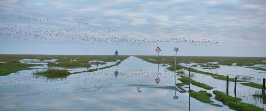 Filmen åbner med et sjaskende vådt og oversvømmet landskab, hvor Gregers trækker slanger ud, får motoren i gang og pumper vand ud over diget. På Mandø er de vant til at leve med havets oversvømmelse. Yderligere forstærket af klimaforandringerne.