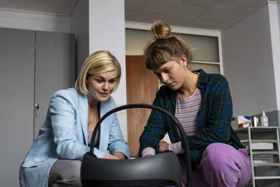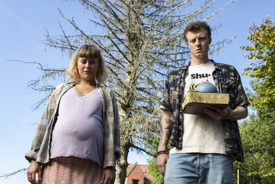 Derimellem foregår filmen i et roligt tempo uden de store dramascener, udover en halvfarlig fødsel undervejs, som dog afdramatiseres med filmens umage par: Steen (Martin Høgsted) og Daria (Monika Mariotti), der hver især er med til at hjælpe Karoline på vej.