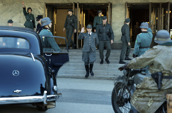 Vi møder ham i filmens åbningsscenen, hvor Quisling (Gard B. Eidsvold) for åben radiotransmissions-mikrofon meddeler, at Hitler er faldet i Berlin. I kamp mod den bolsjevistiske undertrykkelse af Europa.