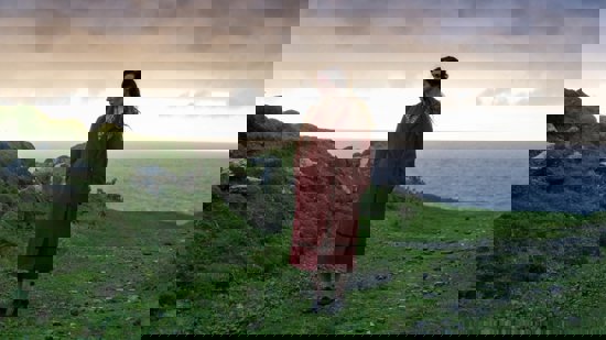Det hele er filmet i betagende bredformat, med den grønne ø malerisk foldet ud for vores øjne, mens vi besøger den lokale pub eller de grå stenhytter, hvor øens beboere her i 1923 kan høre skud fra borgerkrigen ovre på fastlandet.