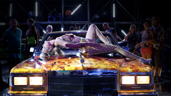 Men overlevede med en titanium-plade indopereret i hovedet. Nu tjener hun til dagen og vejen ved at slange sig seksuelt på udstillede luksusbiler, slikke dem, eller hidse sig selv og publikum med kneppelignende bevægelser på køleren.