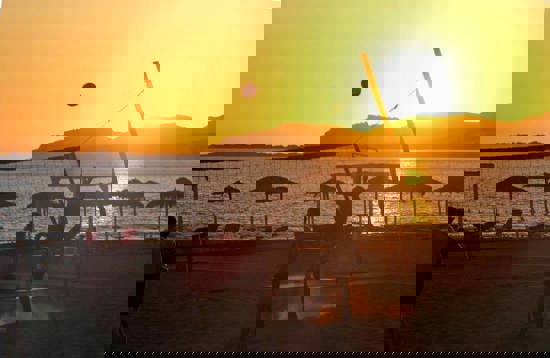 Somme tider er der græske mænd i selskabet. Men mestendels er det udlændinge, som ikke kan finde ud af at komme hjem. Du ved: Lige som Spies' slogan: "Ferier du ikke vel hjem fra". Det er turister, der enten bor i området eller tilbringer uendeligt lang tid i strandkanten. De taler sammen, og de taler med de forbipasserende. Altså hvis man skulle være så uheldig at få øjenkontakt.