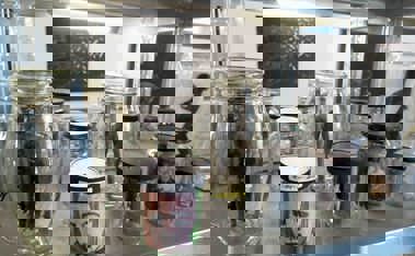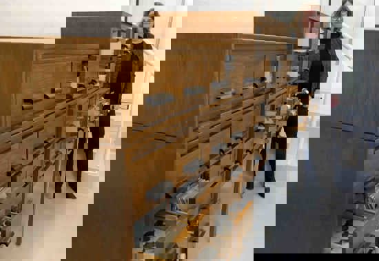 - Det mest biblioteksagtige er i stueetagen. Det er her, der er montrer, tavler, der 200 glas med noget i: Det er noget, der samlet op i naturen, men det er også små kunstgenstande. Her er der samlinger og kartoteker.