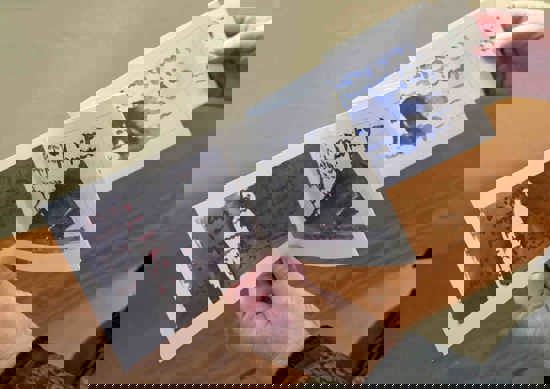 - På næste etage er der stadig bøger og rejser. Der er 7 lydbøger - altså bøger med indbygget lyd, hvor Bruno Kjær læser postkort op. I stueetagen ser man forsiden med billeder på. Bagsiden med teksten læser Bruno Kjær så op på førstesalen, siger Anne Lie Stokbro. Hun håber, at man ser de mange krydsforbindelser mellem værkerne, når man går rundt i udstillingen. For der er mange fortællinger, der går igen. Man kan derfor nemt komme på skattejagt, når man forsøger at knytte de mange tråde sammen.