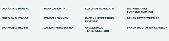 Ellers kan vi fortælle dig, at lex.dk er en samling danske opslagsværker, som man kan tilgå gratis på hjemmesiden. Her finder du for eksempel Trap Danmark med gode røverhistorier fra snart sagt ethvert sted i Danmark krydret med masser af oplysninger om demografi, geografi, kultur, natur med mere. Men du finder også Dansk Biografisk Leksikon. Du finder Den Store Danske Encyklopædi. Her er litteraturhistorie, teaterleksikon, Danmarkshistorie med meget mere. Så bare kom igen.