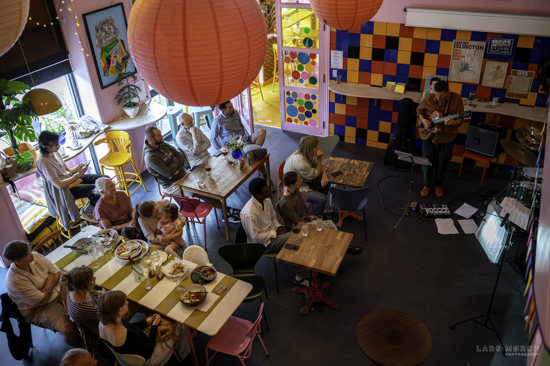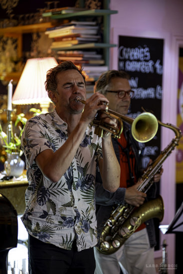 Så var det afsted med kurs mod Vestby-caféen Ulla T, for at høre Jakob Mygind, saxofon, og Jens Fisker, guitar sammen med indkaldte legekammerater fra New Jungle Orchestra, hvor saxofonist Jakob jo også er fast medlem.