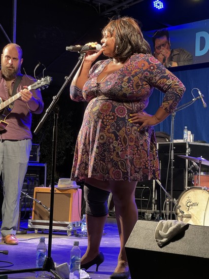 Udmærket men så kom Dawnette på scenen. Sort britisk sangerinde, u-annonceret, men med en stemmepragt, der kunne have pisket Limfjordens bølger til storm.