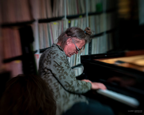 ”Thougts” blev indledt af Kær klimprende med hænder direkte ned på klaverets strenge, og så et par følsomme klaveranslag, inden Lines stemme tog over. Hendes spændvidde er imponerende. Fra det frit svalesvingende lyse, løftende sig himmelblåt, til det dybe, dybe mørke.