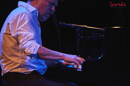 Bag sig havde den 64-årige sanger, uformelt klædt i blå sweater, posede jeans og sneakers i størrelse skoæske, på flygel Jacob Christoffersen, suppleret med Jesper Bodilsen, kontrabas, og Zoltan Csorz, trommer.
