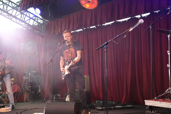 Bas, trommer og to gange elguitar og uden videre lagde bandet ud drønende, storladent. -You know I’m tired of tears, sang Sebastian, mens den melankolske klagesang foldede sig ud under teltkuplen.