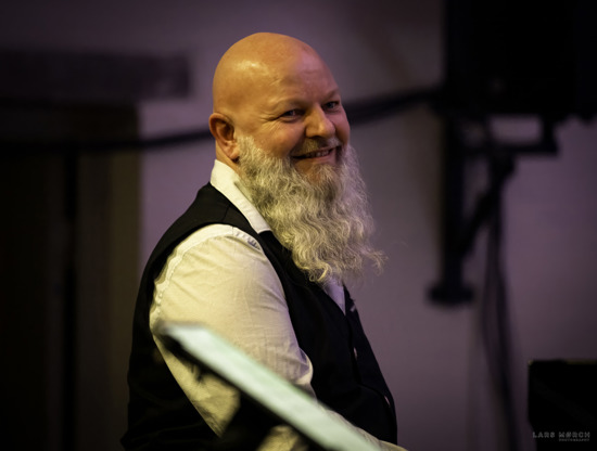 Den blank-issede Gunde enten gungrende derud ad eller løbende som en nøddesulten hasselmus hen over tangenterne, mens han nynnende og brummende giver sig hen til musikken.