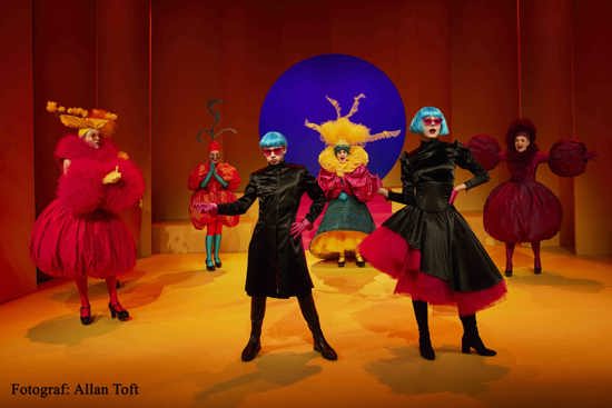 Der er knald på pangfarverne, paryk og makeup, og alle de optrædende er iført højhælede damesko, så både barn og voksen virkelig bliver inviteret ind for i et magisk eventyrunivers.