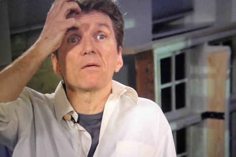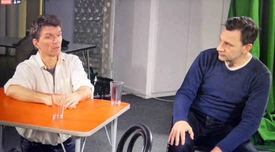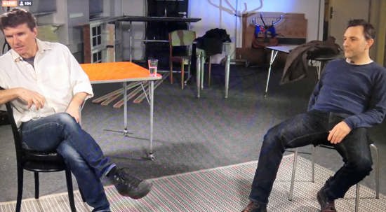 Vi følger de to skuespillere Martin Ringmose og Steffen Berenthz Eriksen fra teatergården og op til teatrets stream-studie. De fortæller undervejs om processen, som vi skal opleve, indtil de indfinder sig på settet.
