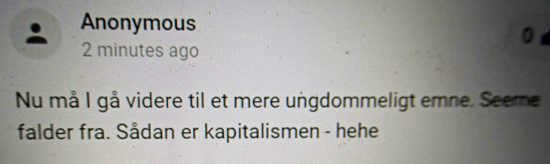 En tilskuer bliver lidt træt af emnet, og skriver i dialogboksen: