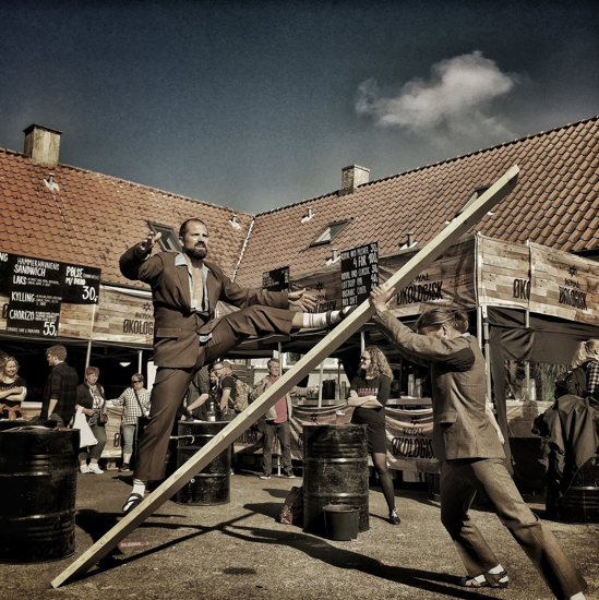 Forestillingen med rå fysik, stunts og slap-stick underholdning kræver ikke billetter eller tilmeldning. Det er bare at møde op..